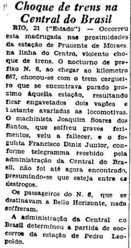 de fogos no trem entre Sete Lagoas e Prudente de Moraes em 1925