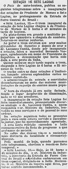 de Sete Lagoas em jornal de 1896 (Orgão Oficial dos