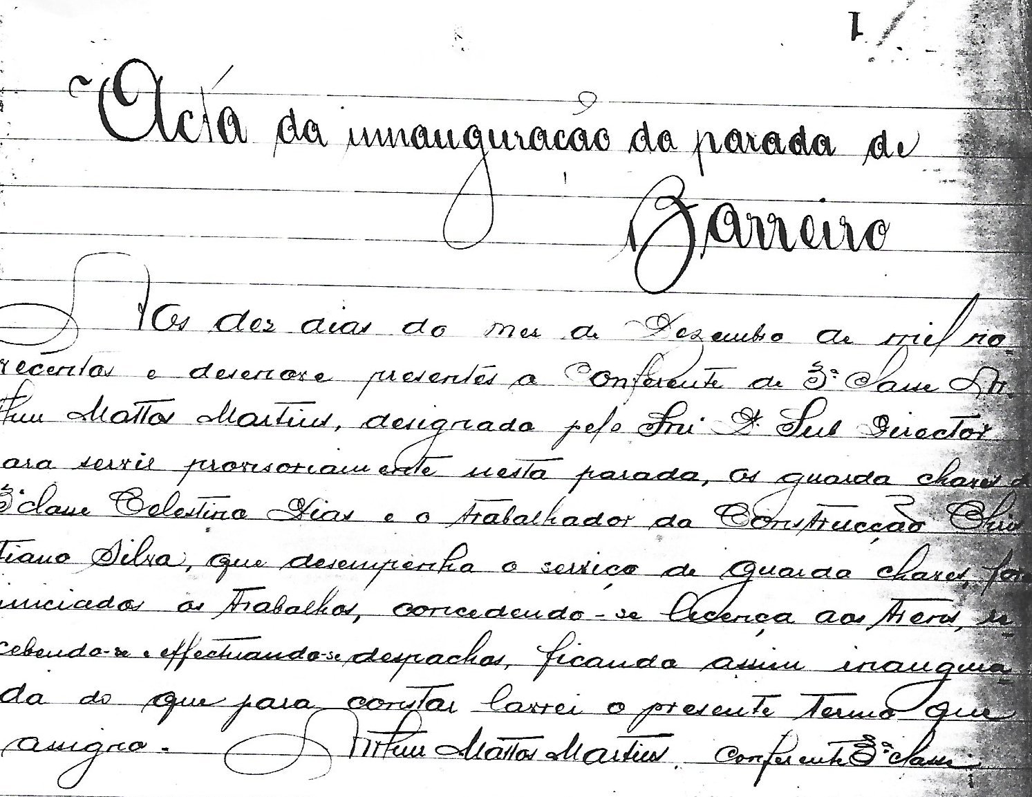 ACIMA: Ata da inauguração da estação original do Barreiro em