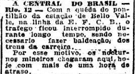 entre o Rio e Belo Horizonte. O trem de passageiros trafegou por ali