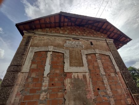 A estação de Marinhos continua "lacrada" com tijolos das entradas e abandonada em 4/12/2022. Foto Edson da Rocha Ferreira. |
