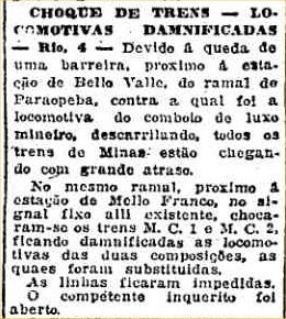 entre o Rio e Belo Horizonte. O trem de passageiros trafegou por ali