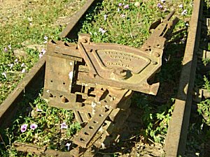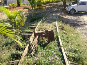 ![]() ACIMA: Vagão FB-447 abandonado e dormentes na estação de Ponte Nova. |