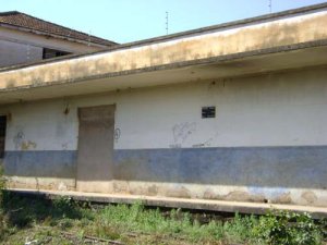 ![]() ACIMA: Antiga plataforma de embarque da estação. |