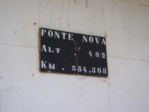 ![]() ACIMA: Placa da altitude e quilometragem da estação de Pont Nova. |