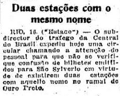 AO LADO: aoa jornal errou: era Dom Silverio e não São Silverio, como errou o jornal. Mas não descobri qual outra estação teria o mesmo nome no ramal. Haveria uma com esse npme na Leopoldina, mas somente anos depois (O Estado de S. Paulo, 17/7/1931).  |