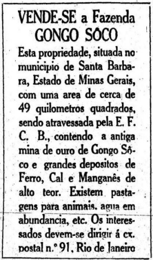 de Gongo Soco (O Estado de S. Paulo, 17/5/1941). |