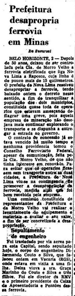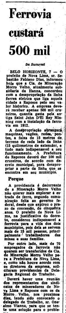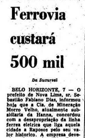 A ferrovia teria sido desativada quando, afinal? Dois artigos do jornal "O Estado de S. Paulo" de 5 e de 8 janeiro de 1965 (ver caixas abaixo, de 1965) falavam sobre a desapropriação imediata da ferrovia de Morro Velho, mas não citava se ela deveria continuar em funcionamento ou não. Teria sido este o fim da pequena ferrovia?