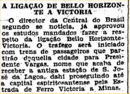 Vitória a Minas, a partir de 1936. A EFVM começou a circular no ramal
