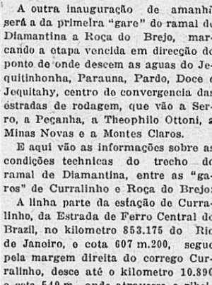 ramal de Diamantina, que alcançava esta cidade saindo da estação