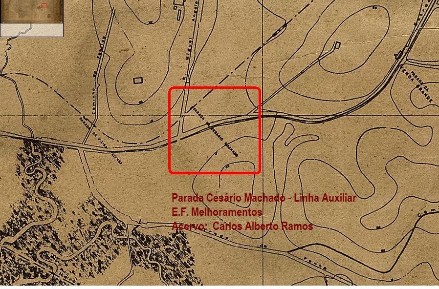 Não encontrei qualquer outra citação desta parada, exceto o horário de 1895 citado acima e o mapa abaixo, que, embora sem data, parece ser dessa época. Reparar no aspecto a volta da linha e da posição da estação. Em 1886 esta estação ainda existia (cf. Relatorio para o ano de 1896 do Ministerio da Viação, Industria e Obras Publicas, apresentado em maio de 1897).