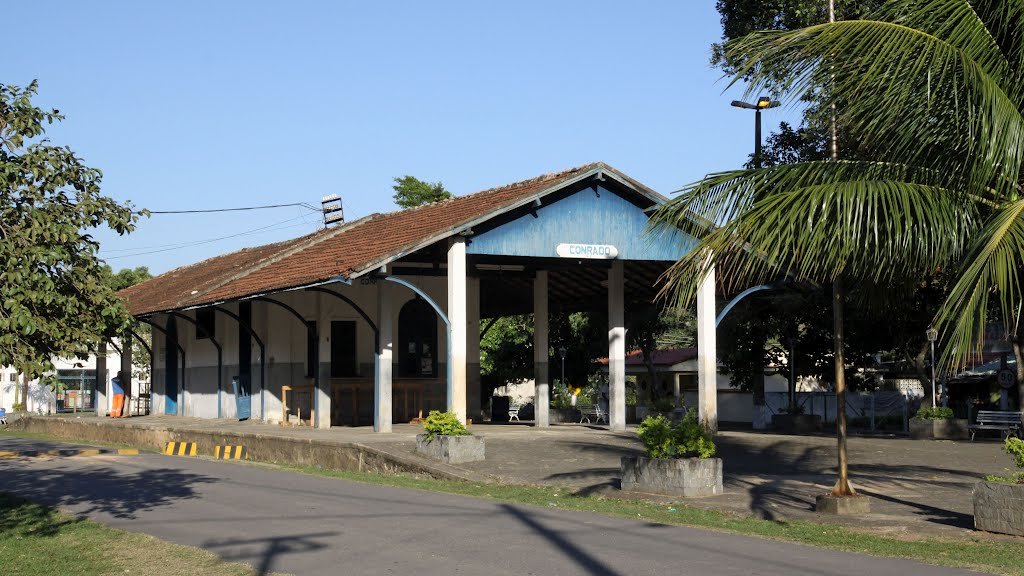 nome que foi sendo simplificado para Conrado com o passar dos anos. A estação que tinha este nome passou a se chamar Francisco Fragoso (km 106,387 na mesma linha). O porquê de se trocar nomes na mesma linha férrea, confundindo passageiros e, mais tarde, historiadores, não se sabe.