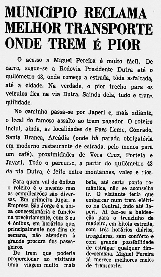 AO LADO: Visite Miguel Pereira, mas não use o trem! (CLIQUE SOBRE O ARTIGO PARA VÊ-LO MELHOR) (O Estado de