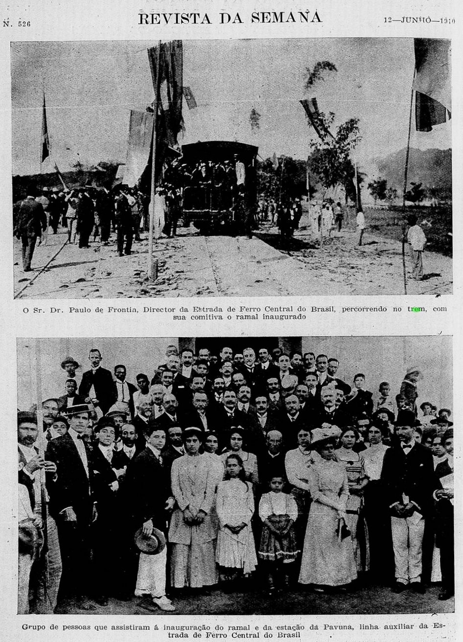 ACIMA: Duas fotos da inauguração da estasção em 1910 (A Careta,