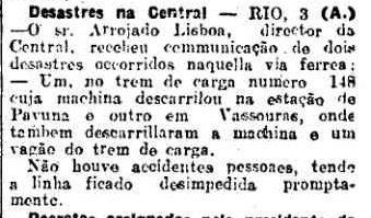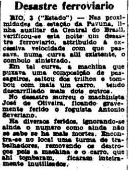 AO LADO: Acidente na estação. Provavelmente o mesmo citado logo abaixo (O Estado de