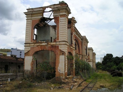 a única rotunda de bitola métrica ainda em pé no País começar a cair.