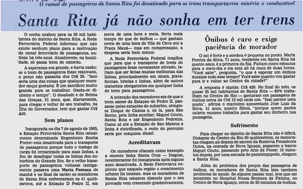 "A foto de 1982 da estação de Santa Rita não