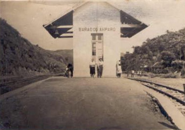 ACIMA: Na estação de Barão de Amparo, data desconhecida.