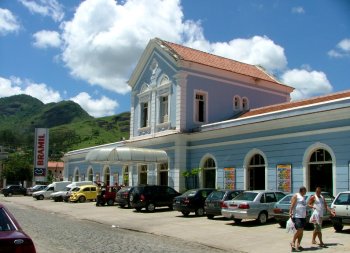 Valença, RJ Acima, antigo depósito da Central do Brasil, hoje supermercado. Abaixo, três fotos da Praça da Estação. Fotos de 01/2006. (Fotos Jorge A. Ferreira)