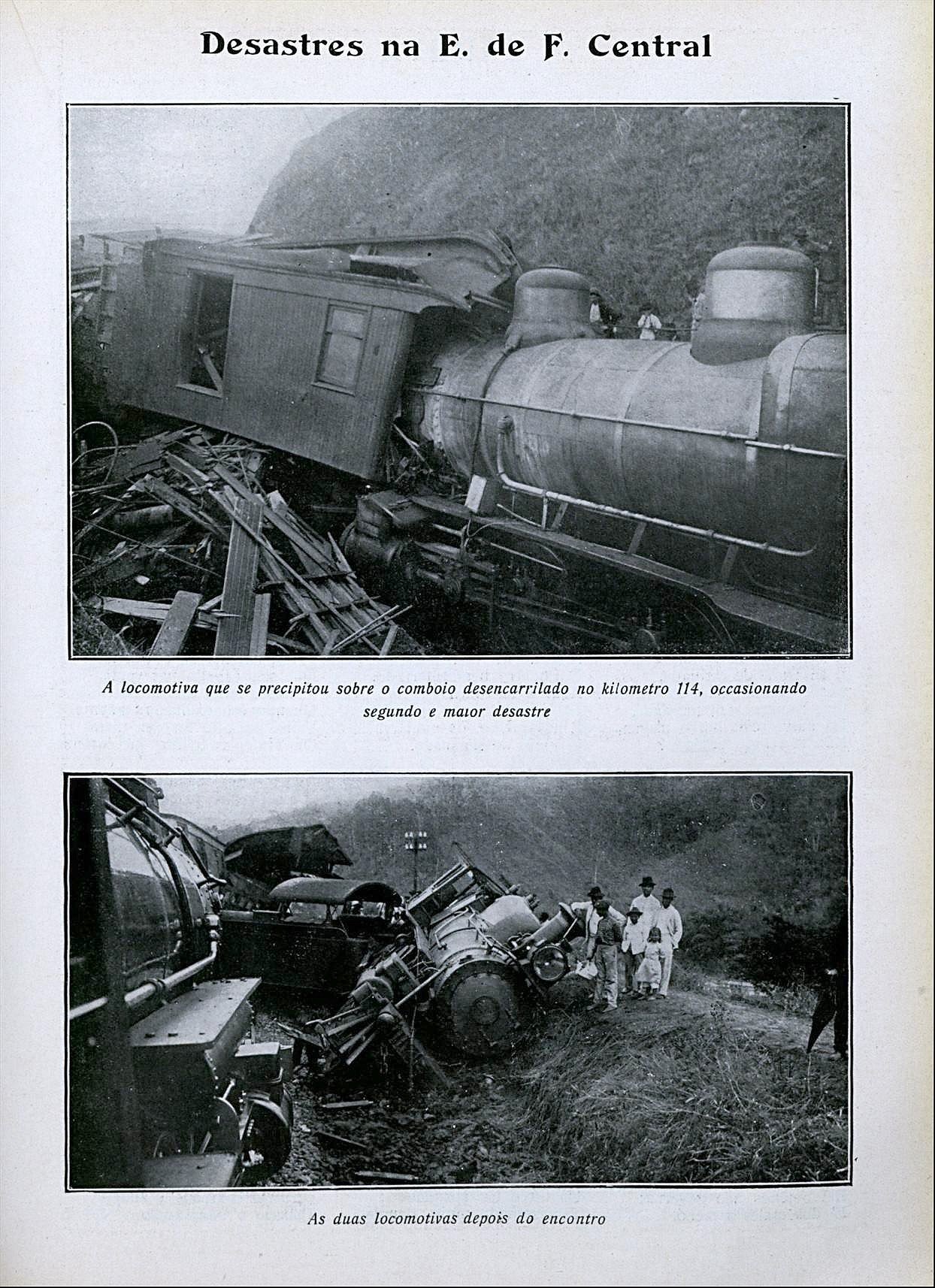 ACIMA: Acidente em 1911 no km 114, quase na estação de Ypiranga, hoje Aristides Lobo - CLIQUE SOBRE A FIGURA PARA VER MAIS SOBRE O ACIDENTE (A Careta, 14/11/1911).