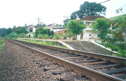 Pedras. A estação, hoje uma singela plataforma, está bem cuidada pela