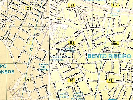 ACIMA: Localização das estações de Bento Ribeiro e de Marechal Hermes na linha do Centro nos anos 1960 - CLIQUE SOBRE O MAPA PARA VER ÁREA MAIOR (Guia Levi).