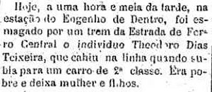 AO LADO: Atropelamento na estação (O Estado de S. Paulo, 28/10/1894). |