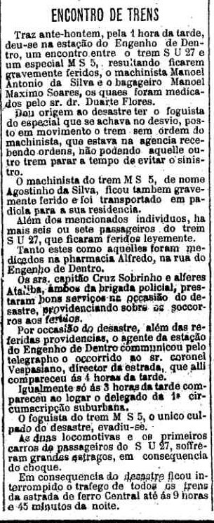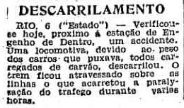 Acidente de trem na E. F. Central do Brasil em Engenho de Dentro,