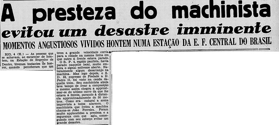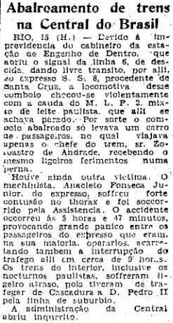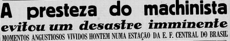 ACIMA: Maquinista evita choque de trens na estação em 1937. CLIQUE SOBRE A FIGURA PARA VER A REPORTAGEM INTEIRA (Correio de S. Paulo, 4/2/1937).