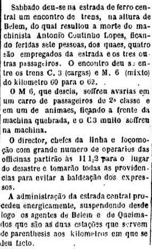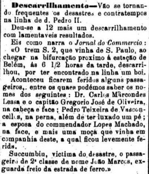AO LADO: Morte noi acidente em Belem (Japeri) (O Estado de S. Paulo, 20/1/1891) |