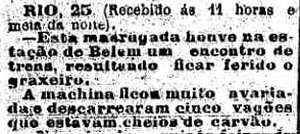AO LADO: Choque de trens em Belem (Japeri) (O Estado de S. Paulo, 26/1/1896) |