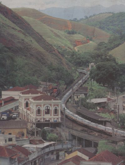 Paulo de Frontin, RJ A cidade de Paulo de Frontin tendo como prédio principal a antiga estação ferroviária, em 2005. Um trem de minério passa pela estação nesse momento. (Foto do jornal O Estado de S. Paulo de 26/12/2004)