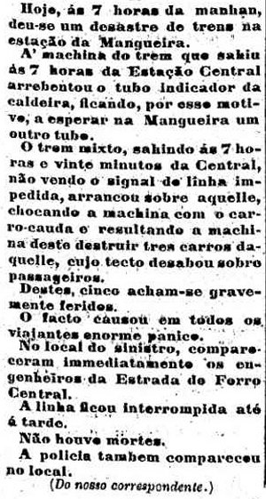 ACIMA: O acidente na estação de Mangueira - CLIQUE SOBRE O TEXTO PARA VER TODA A REPORTAGEM (O Estado de S. Paulo,