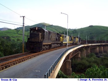 os trens cargueiros da MRS, atual concessionária da linha, e também