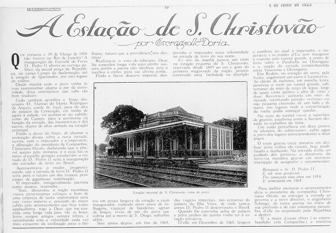 'Nesse trecho, ainda à direita da linha, destaca-se, na eminencia central da Quinta da Boa Vista, o antigo palácio dos Imperadores, hoje Museu Nacional. O palácio era servido pela estação 'Imperial', que se localizava também à direita da linha. Essa estação foi demolida em 1925, para dar passagem a novas linhas. Revive porém no prédio (que lhe conservou a feição arquitetônica) do escritório central da 1ª Inspetoria de Linha e que se acha situado à esquerda, em frente ao próprio local onde existiu a estação'.