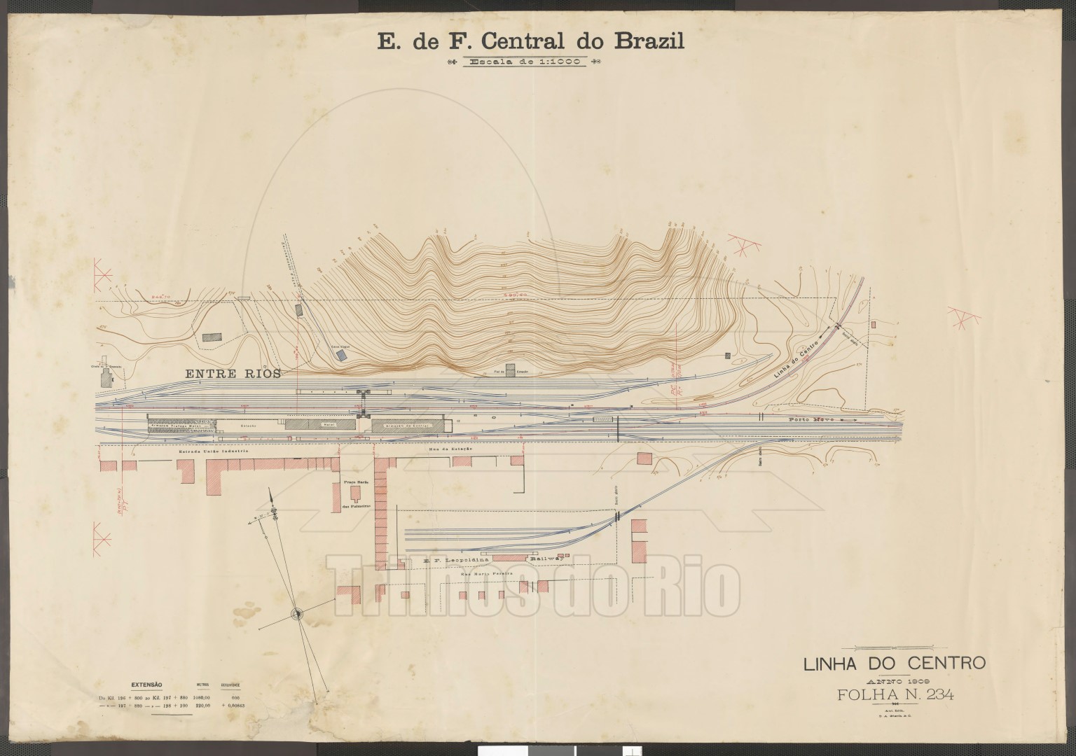 1892. Em 1895 foi aberta a linha entre a estação de Mangueira e a da atual Honorio Gurgel. Em março de 1898 foi entregue o trecho até Paraíba do Sul. Até Três Rios foi logo em seguida e em 1911 alcançou Porto Novo do Cunha, anexando o ramal deste nome, que teve a bitola reduzida para métrica, a mesma da Auxiliar. O traçado da serra,