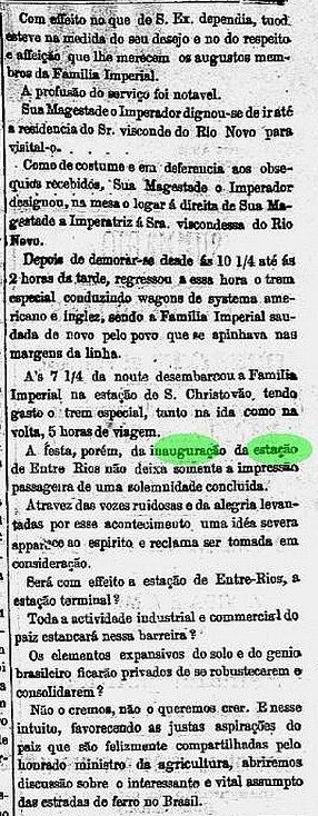 de Entre Rios, inaugurada em 1867, foi o ponto de partida,