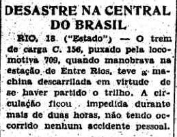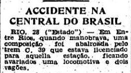 ACIMA: Acidente na estação de Entre Rios (O Estado de S. Paulo, 19/10/1932).