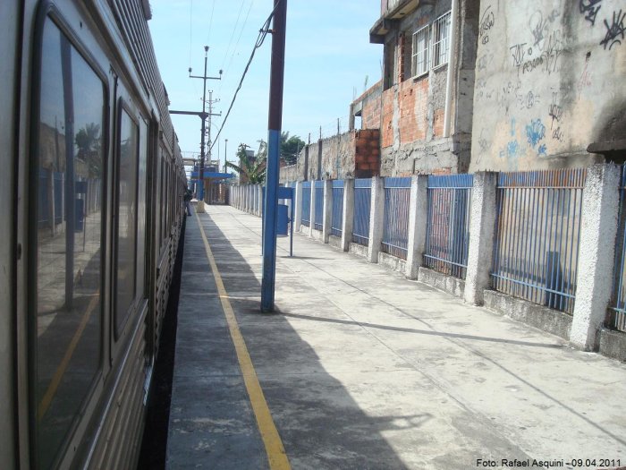 da favela Vila Vintém. O tráfego de trens entre as estações