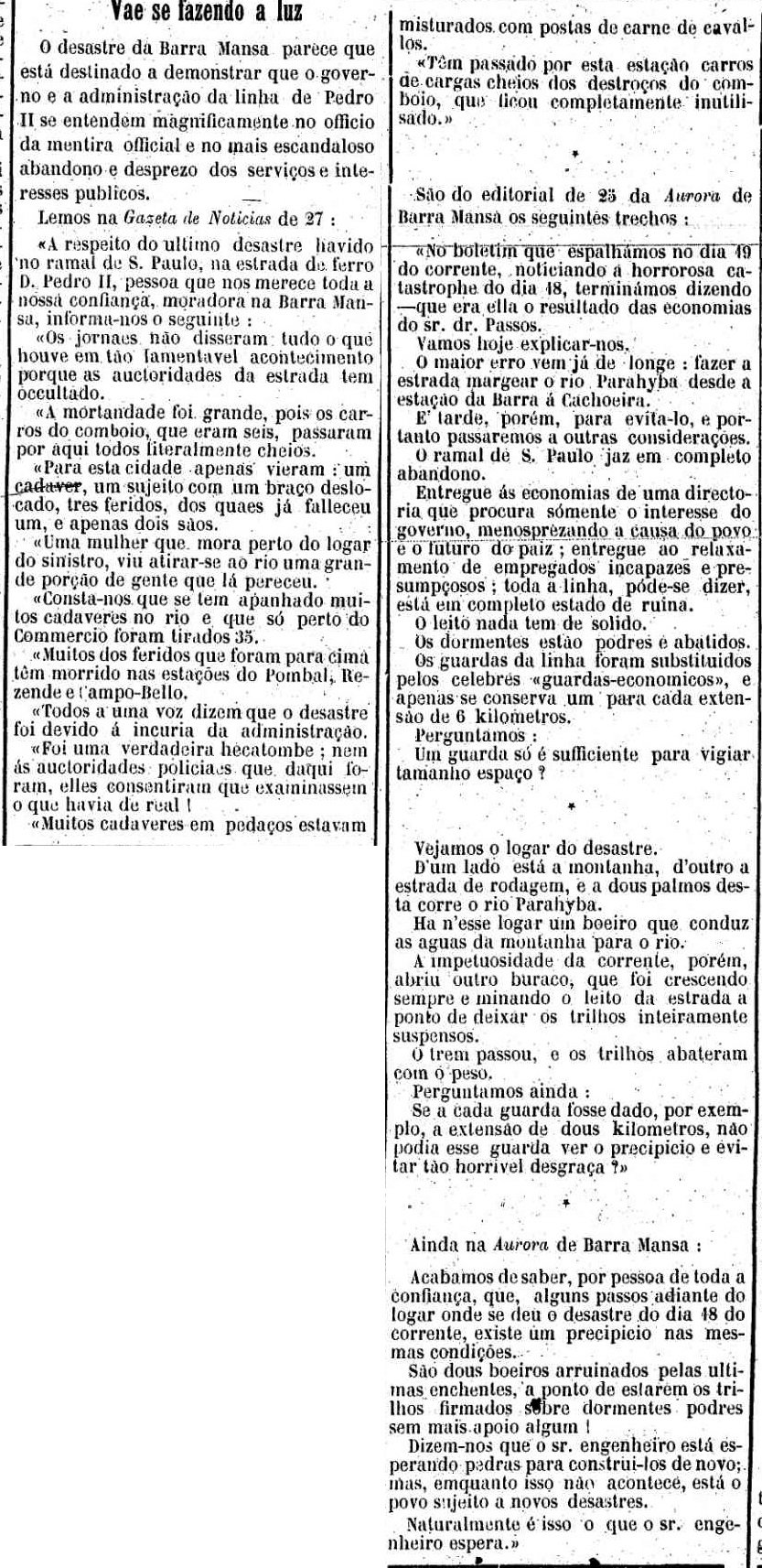 AO LADO: Desastre na estação em 27 de janeiro - CLIQUE SOBRE O TEXTO PARA VÊ-LO INTEIRO (A Provincia de S. Paulo,