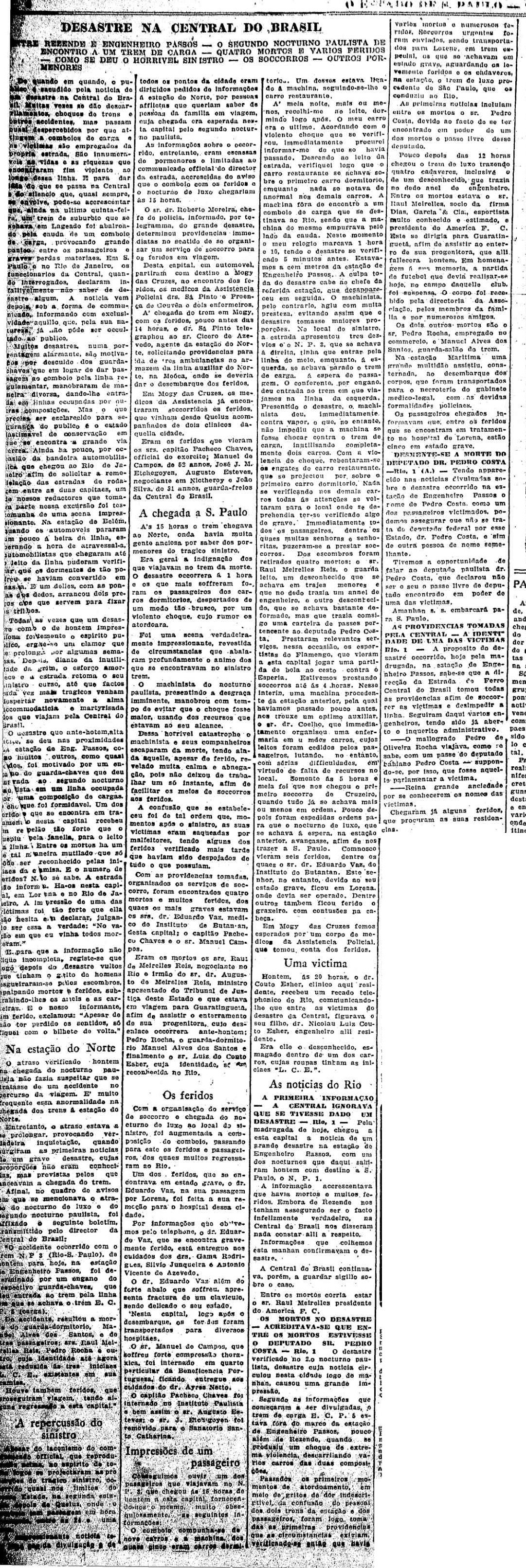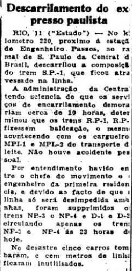 AO LADO: Acidente próximo à estação (O Estado de S. Paulo, 1/4/1932). |