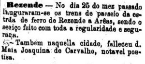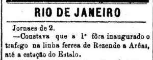 DA LINHA: A E. F. Resende a Bocaina (também chamada originalmente de Resende-Areias) foi aberta em 1877, em seu primeiro