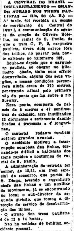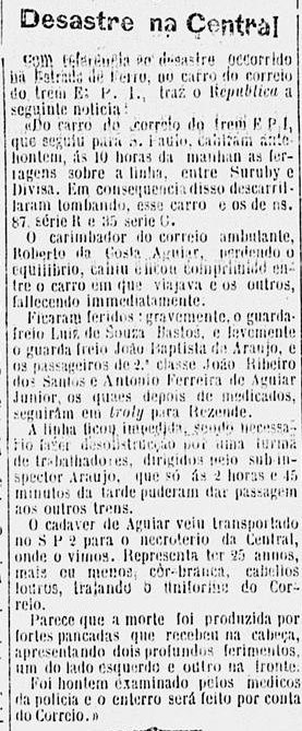 AO LADO: Desastre com o carro de correio do trem entre Suruby e Divisa (atual Floriano)