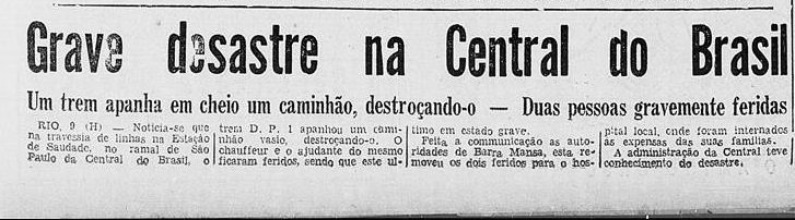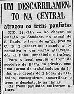 AO LADO: Outro acidente na estação de Saudade (Correio de S. Paulo, 24/11/1936). |