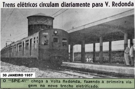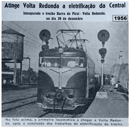A EFCB eletrificou o trecho entre o Rio de Janeiro e a estação de Volta Redonda no final de 1956 (veja caixas de 1956 e 1957, mais abaixo).
