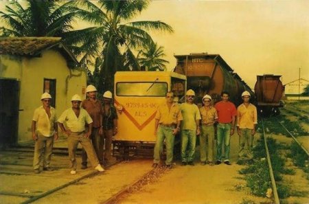 ACIMA: Trabalhadores da ferrovia na estação de Belo Jardim, provavelmente nos anos 1980. Autor desconhecido).