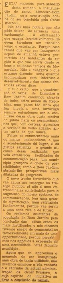AO LADO: Inauguração do trecho Limoeiro-Bom Jardim - CLIQUE SOBRE A NOTICIA PARA VÊ-LA INTEIRA (Diario da Manhã, PE, 6/5/1937). |
