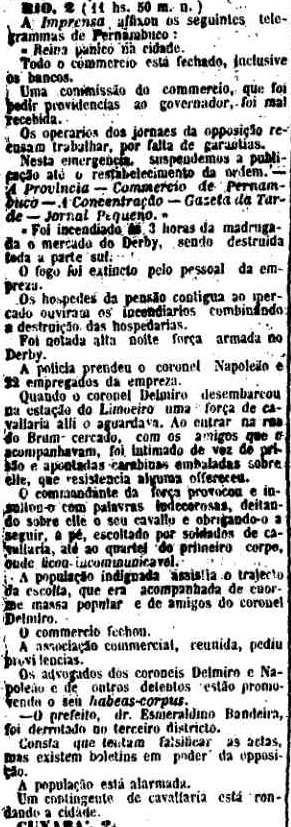 AO LADO: Revolta no Recife e na estação do Brum (chamada aí de Limoeiro, pois esta era a linha original que saía do Brum) - CLIQUE SOBRE O ARTIGO PARA LER TODA A NOTÍCIA) (O Estado de S. Paulo, 3/1/1900). |