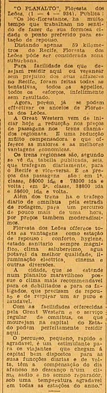 AO LADO: A cidade de Floresta dos Leões em 1934 (Diario da Manhã, PE, 6/4/1934). |