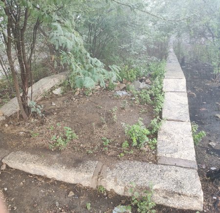 ACIMA: Sobrava em 2021 apenas a moldura de pedras plataforma da antiga estação (Foto Rodrigo Henrique em 14/4/2021). |